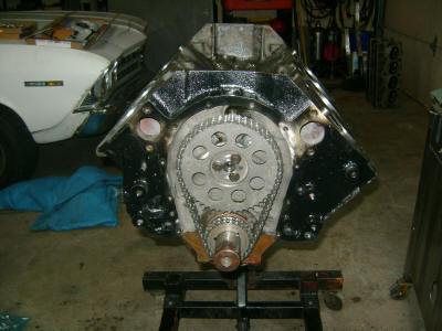 The crank is in along with the pistons.  Cam is in and timed.