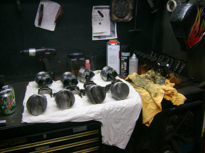 New parts have arrived and parts are starting to go together.  The block was honed and cleaned and painted black.  Since the pistons were like new, they got re-used along with the balanced rods.  The heads got a valve lapping and will be assembled with new Comp Cams valve springs.