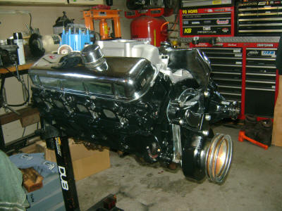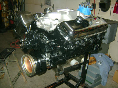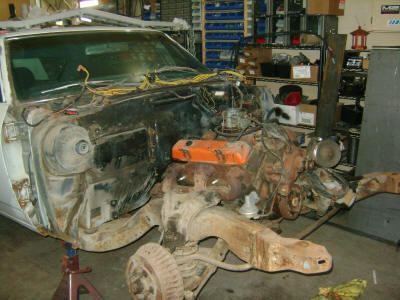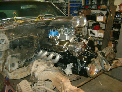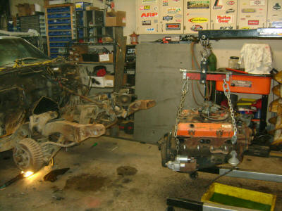 The engine is pretty much done and ready for transplant.  The front clip will come off first to fit the big block in.  Once it is in, then it will come out and go on the cart for storage while we strip the rest of the car apart.