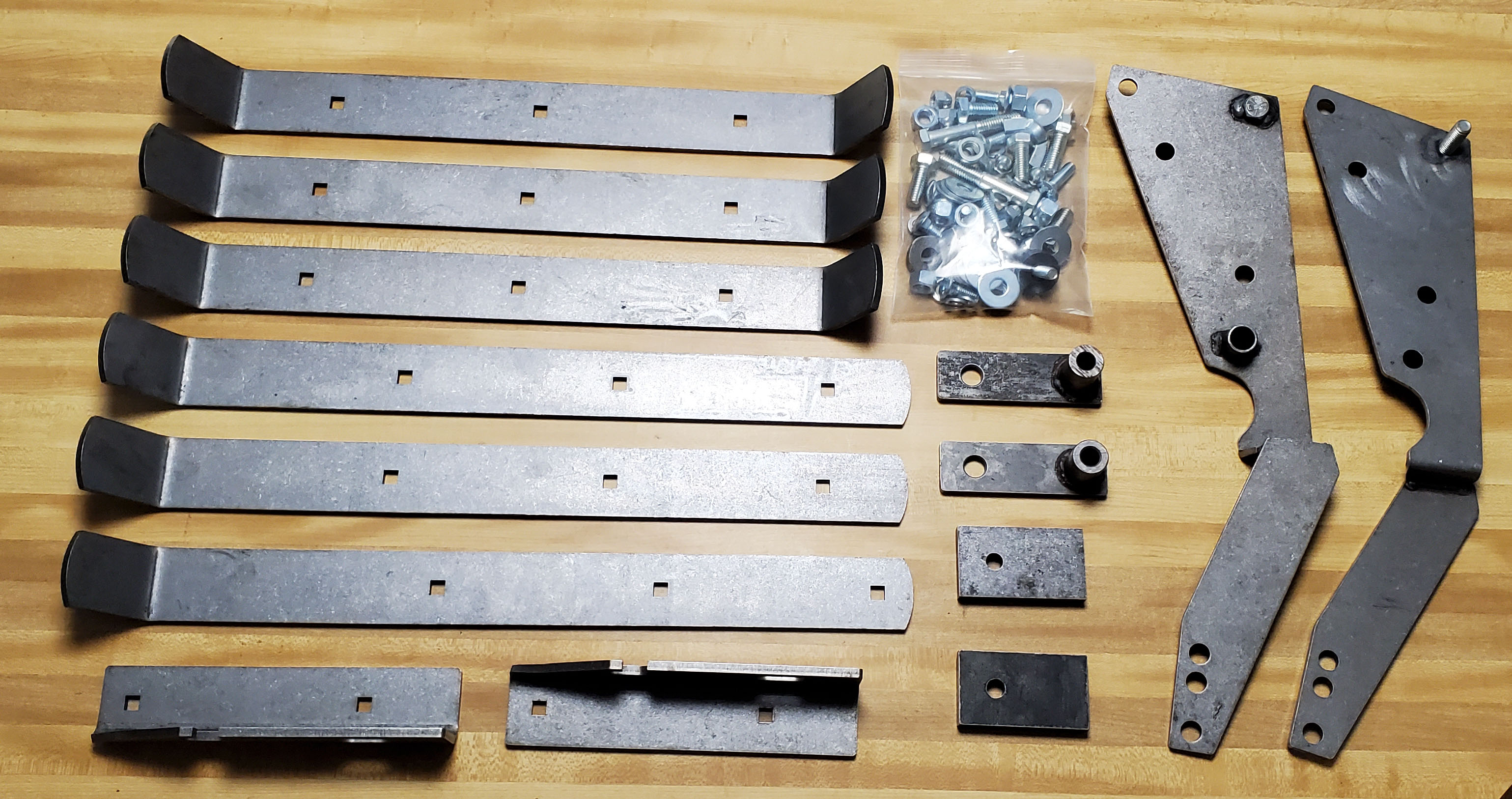 Reproduction of the original Gard-N-Cart. Made to tight specs with today's technology. All high grade steel, laser cut to precision tolerances. Parts are tumbles after welding to remove any laser oxides and are ready for primer and paint. Kit is designed as original for the Originals and the 70 / 100's. Comes with complete grade 5 hardware to fit any of the listed tractors above. May fit more with slight modifications. Sold UNPAINTED.
