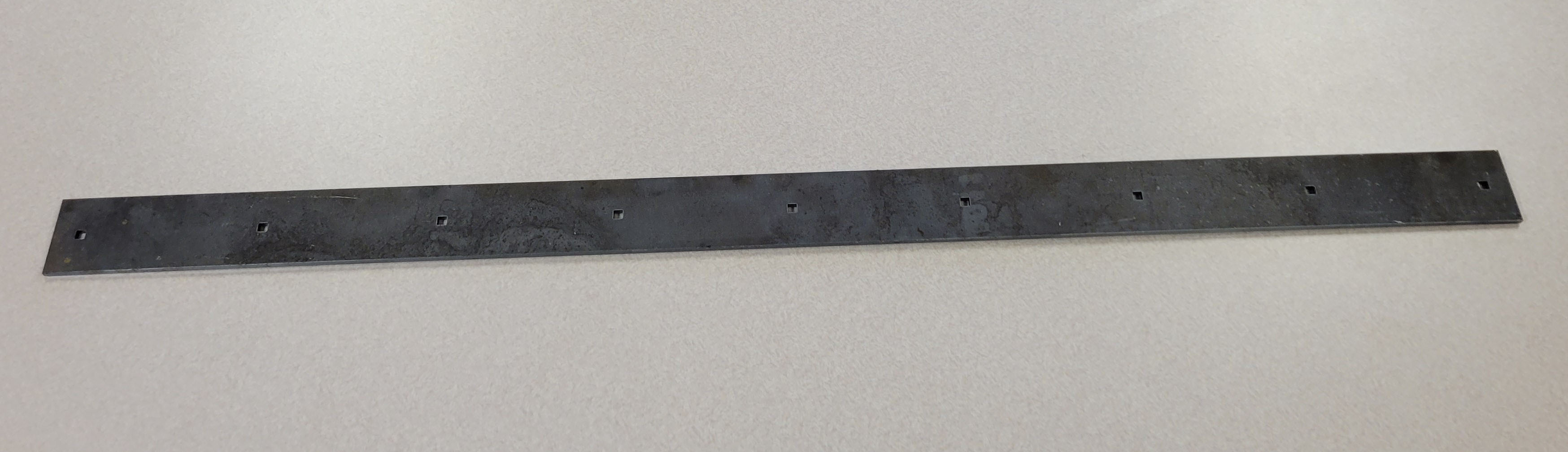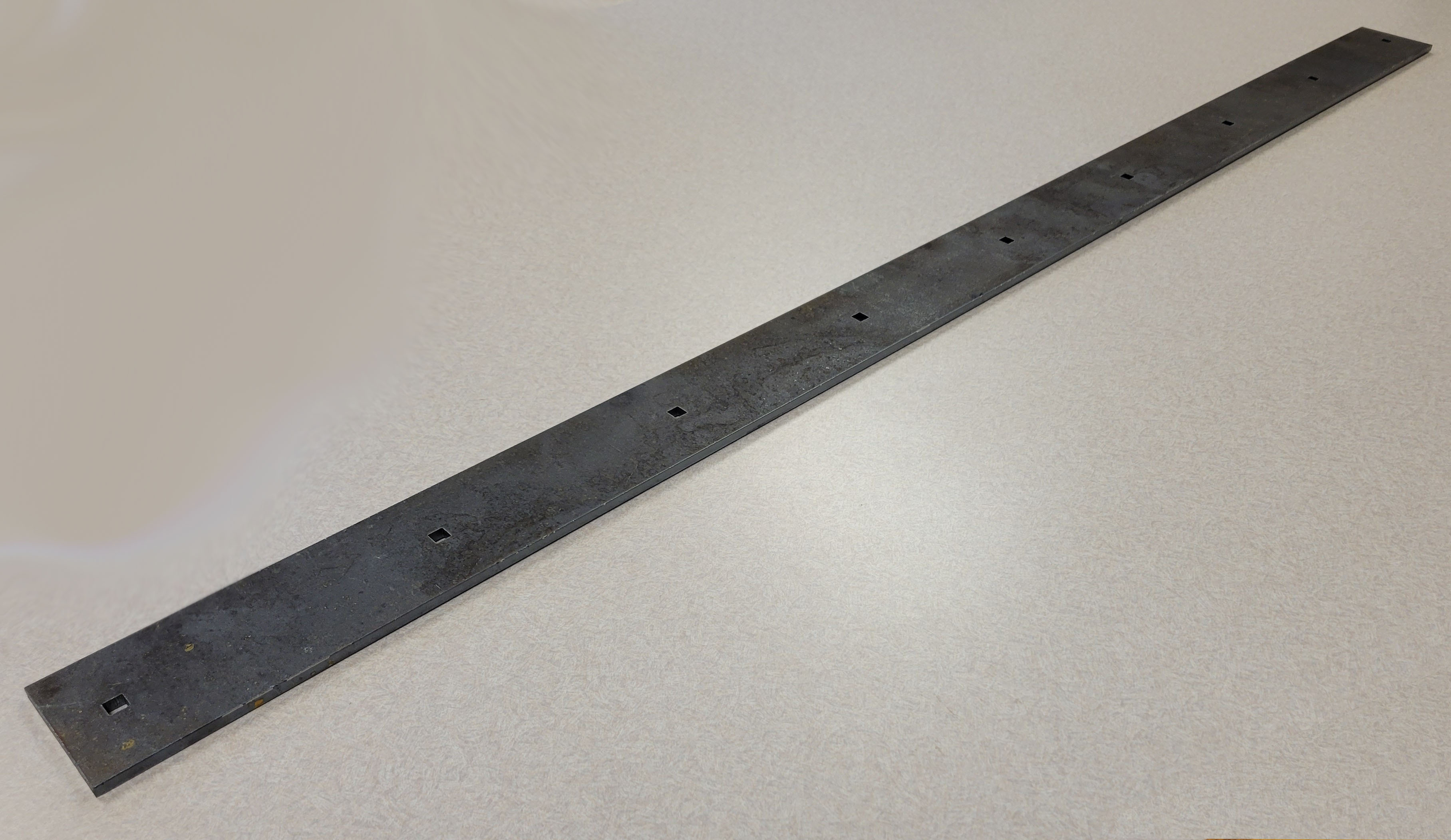 Reproduction Haban 54" push blade cutting edge. It is made out of AR400. AR stands for "Abrasion Resistant" and 400 is the class. 400 is really good! We also increased the thickness to .250" (1/4") of an inch.