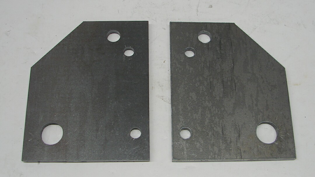 These are the newer style mounting brackets for the Haban blades used on the 1991 and later Cyclops tractors - Kit# 190-401-100. Allows the mounting of the blade without notching the newer style fenders. Sold in Pairs, Unpainted.