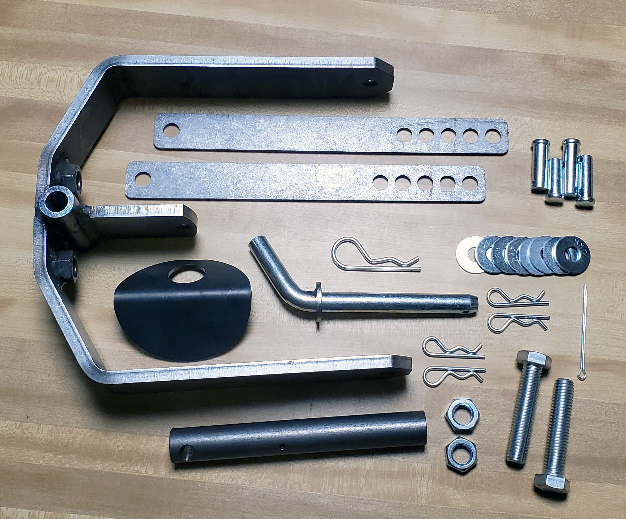 Extended Length Sleeve Hitch Kit. This kit is 3" longer than the regular kit and works great for tractors that want to leave their tiller gear boxes on. Also contains the 3" longer lift pin. This kit comes with either Floating Straps, Static Straps or our Multi-Config Straps. Complete. UNPAINTED